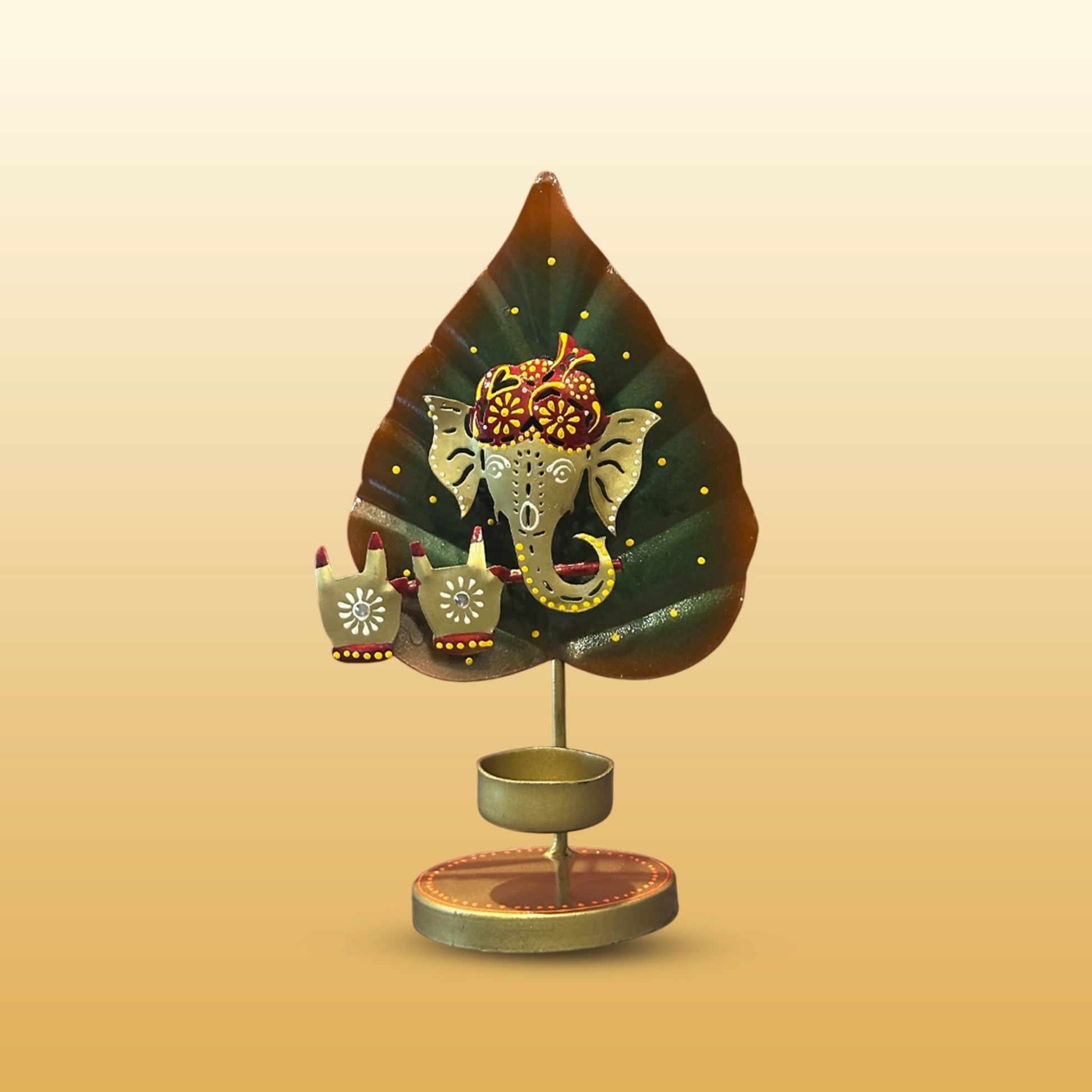 Design: Pan leaf backdrop with Ganesh figure and integrated tealight holder